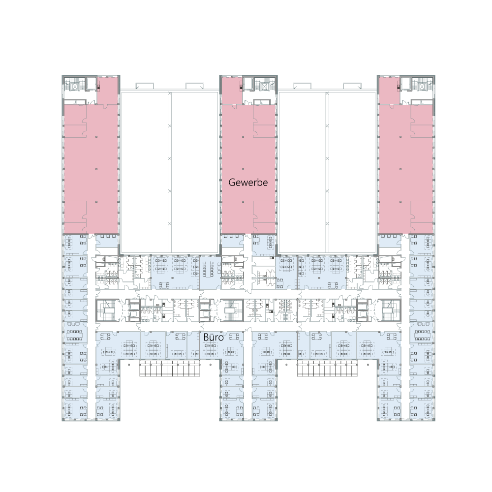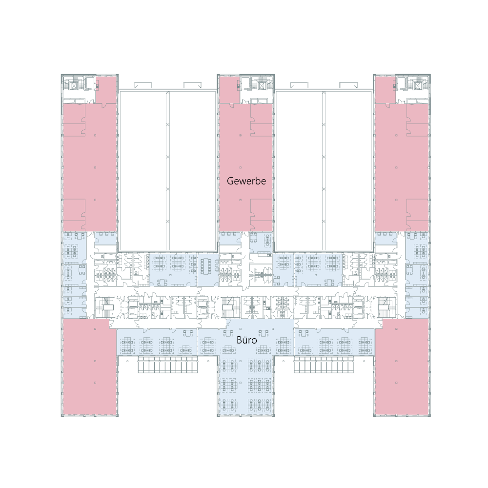 MINDS bietet flexible Mietflächen passend für Ihr Unternehmen, ob Forschung und Entwicklung, Produktion oder Handwerk. Auf fünf Geschossen entstehen insgesamt ca. 19.000 m² Gewerbefläche und ca. 8.000 m² Bürofläche, teilbar ab 600 m². Je nach Bedarf kann die Aufteilung angepasst werden. Lichte Raumhöhen von 3,00 – 4,75 m sorgen für optimale Arbeitsbedingungen und komfortable Ausleuchtung.